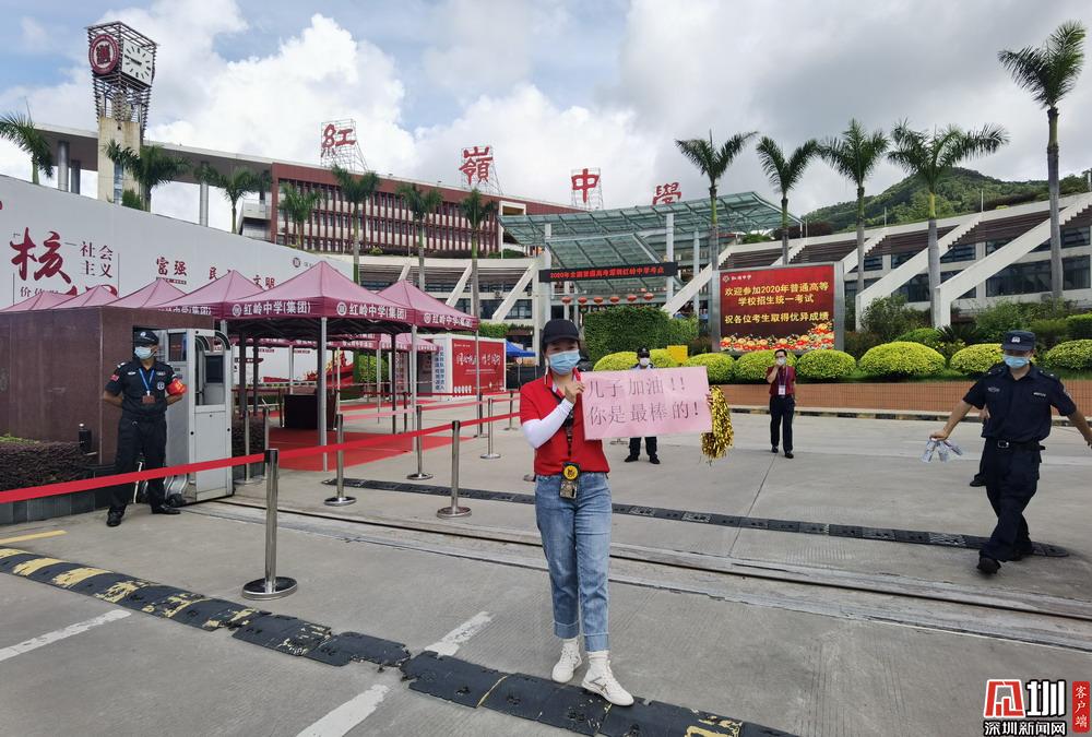 【紅嶺中學(xué)】門口正有一名家長舉著“兒子加油!你是最棒的”標(biāo)語拍照留念