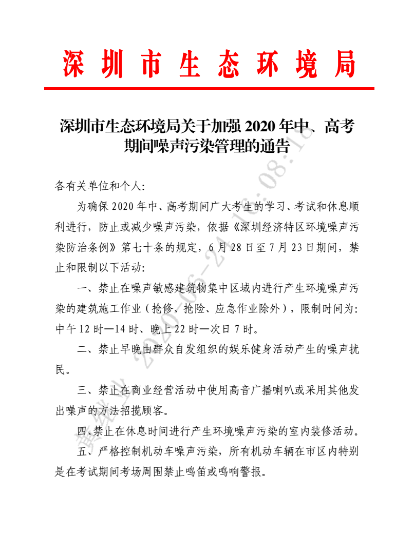 據(jù)了解,6月19日深圳市生態(tài)環(huán)境局發(fā)布了《深圳市生態(tài)環(huán)境局關(guān)于加強(qiáng)2020年中、高考期間噪聲污染管理的通告》,中午12點(diǎn)至下午14點(diǎn)、晚上10點(diǎn)至第二天早上7點(diǎn)是禁止施工時(shí)段,如果發(fā)現(xiàn)有施工行為可以直接立案查處并查封,而黃木崗綜合交通樞紐一工區(qū)就屬于此類情況。