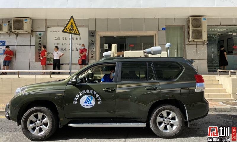 深圳中學考點外無線電監(jiān)測管理站工作車輛在現(xiàn)場進行保障任務。