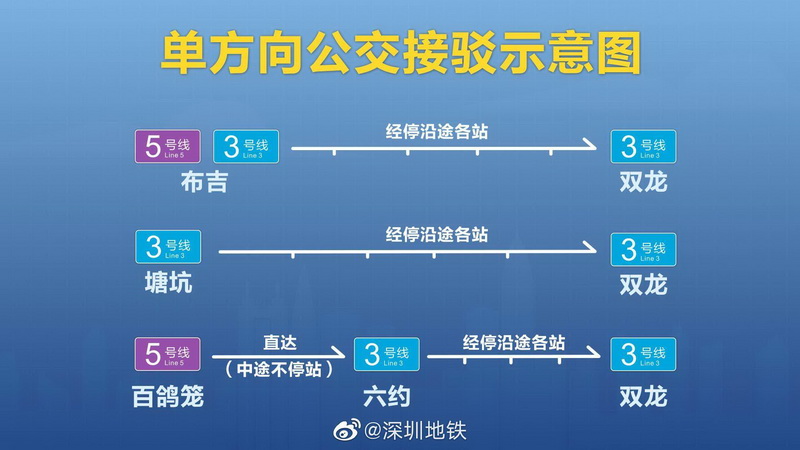據(jù)介紹,提前結(jié)束運營后,深圳地鐵將開設布吉雙龍→塘坑→雙龍、百鴿籠→六約→雙龍共3條單方向公交接駁線路。在此期間出行的乘客,請留意車站末班車時間,做好出行規(guī)劃,合理安排行程。如需了解詳情請咨詢車站工作人員,或撥打深圳地鐵客服熱0755-88960600。