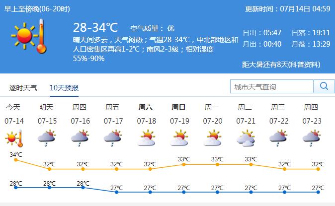 見圳客戶端·深圳新聞網(wǎng)2020年7月14日訊 14日晴天間多云,天氣悶熱;氣溫28-34℃,中北部地區(qū)再高1-2℃;南風(fēng)2-3級;濕度55%-90%。15-17日多云,有短時(雷)陣雨;18-20日天氣悶熱,局地偶有短時陣雨。