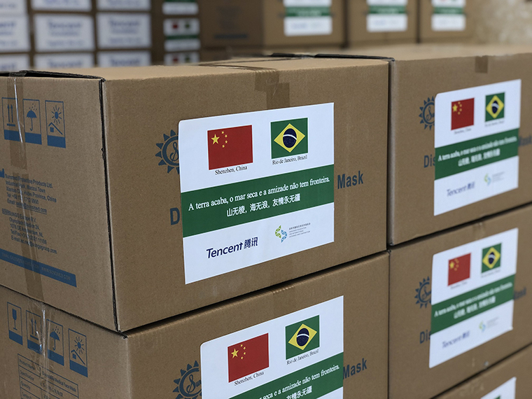 為支持國(guó)際抗疫合作,在深圳市委外辦指導(dǎo)支持下,騰訊公司聯(lián)合深圳市國(guó)際交流合作基金會(huì)(以下簡(jiǎn)稱“基金會(huì)”),向巴西里約熱內(nèi)盧市捐贈(zèng)20萬個(gè)口罩,其中包含10萬個(gè)一次性醫(yī)用口罩和10萬個(gè)KN95口罩。7月14日上午,抗疫物資捐贈(zèng)儀式在福田區(qū)NEO企業(yè)大廈舉行。