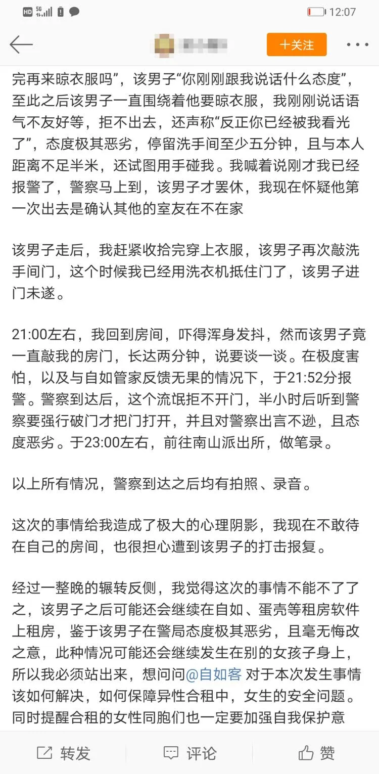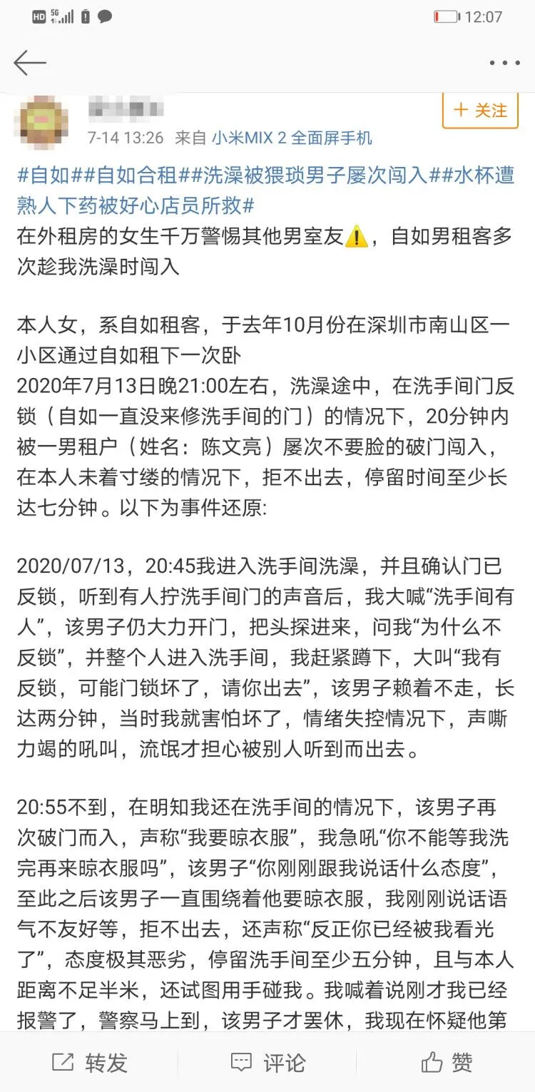 南山警方通報“女生合租房衛(wèi)生間洗浴被同租男舍友闖入”事件結果