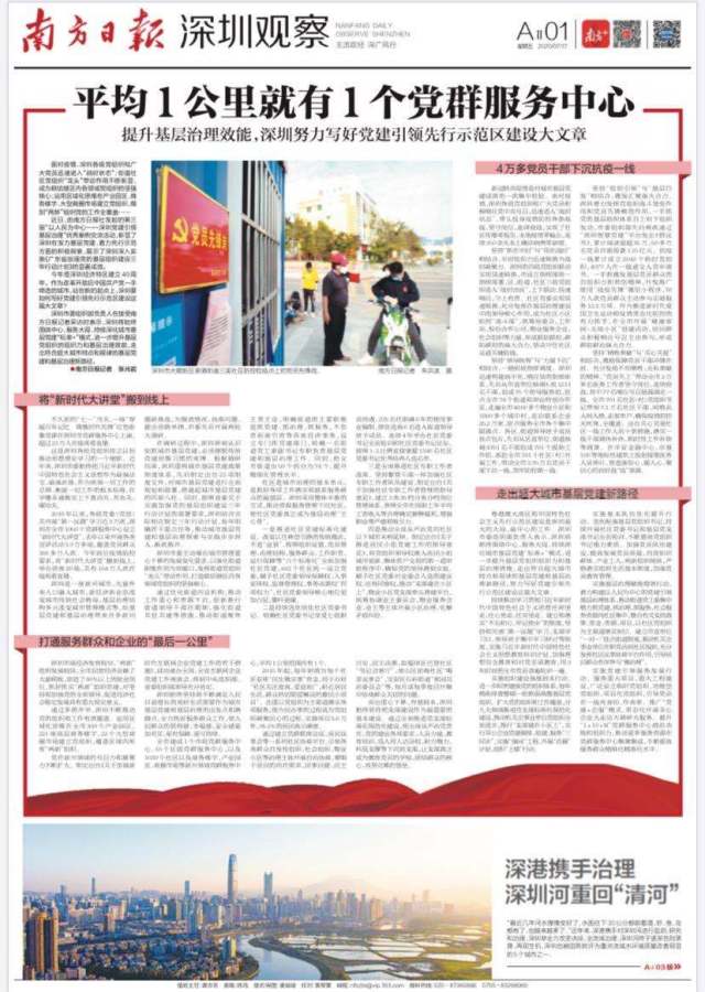 原標題:深圳:平均1公里就有1個黨群服務中心