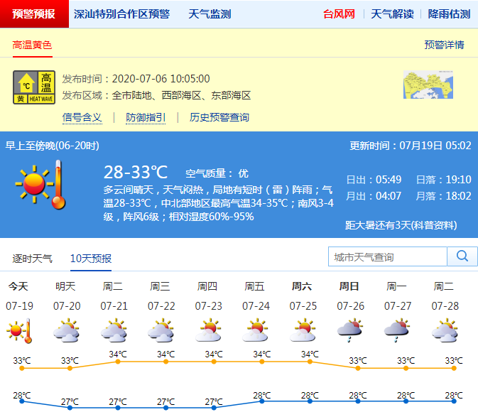 深圳未來一周悶熱天氣持續(xù) 需防中暑,偶有短時陣雨