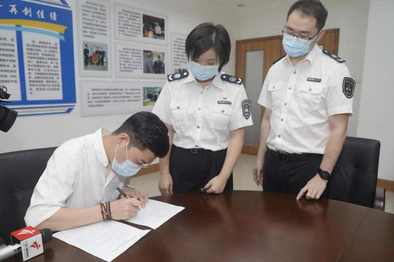 在深圳市市場(chǎng)監(jiān)督管理局南山分局粵海所,記者看到企業(yè)法人現(xiàn)場(chǎng)接受行政處罰決定書(shū),對(duì)于違法行為,該負(fù)責(zé)人表示“已經(jīng)進(jìn)行整改”。