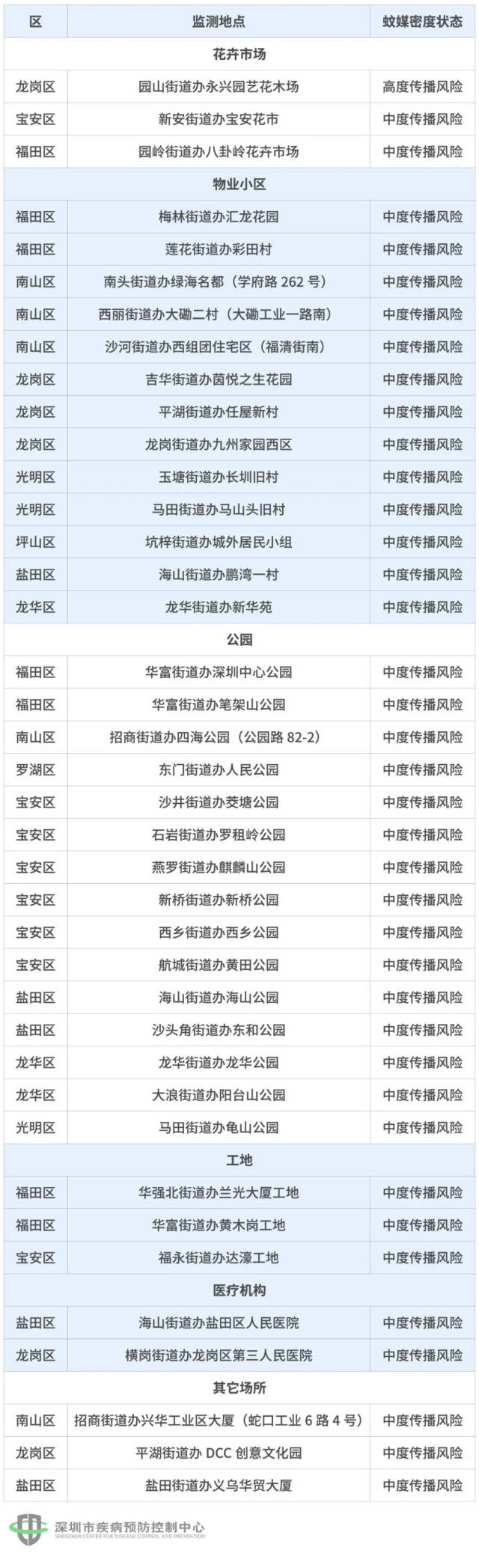 高、中密度的39個(gè)“黑點(diǎn)”里,有3個(gè)是花卉市場(chǎng),13個(gè)小區(qū),15個(gè)公園,3個(gè)工地,2個(gè)醫(yī)療機(jī)構(gòu),3個(gè)其他場(chǎng)所。