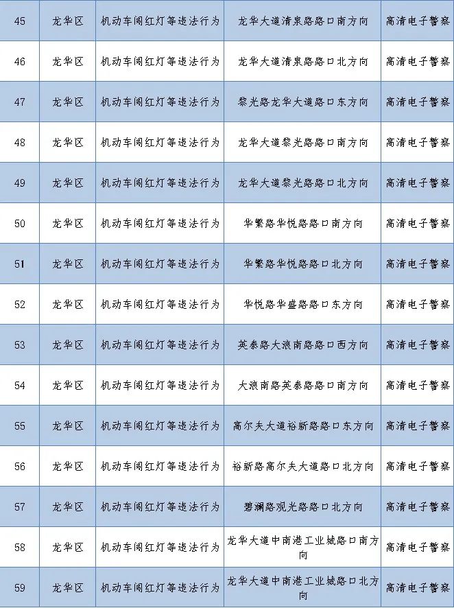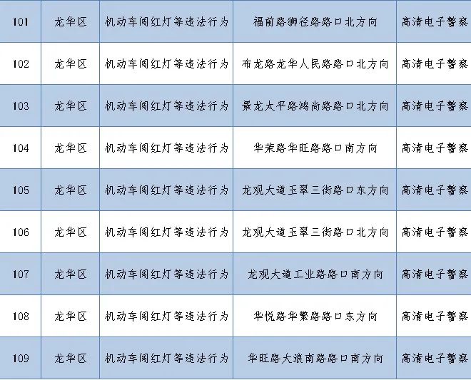 見圳客戶端·深圳新聞網(wǎng)2020年7月28日訊 為保障道路的通行有序和安全,加大對機動車違法行為的非現(xiàn)場執(zhí)法力度,保障深圳道路交通安全暢順。近期,深圳交警根據(jù)《道路交通安全違法行為處理程序規(guī)定》(公安部令105號)第十六條規(guī)定,依法公布啟用262套交通技術(shù)監(jiān)控設(shè)備。