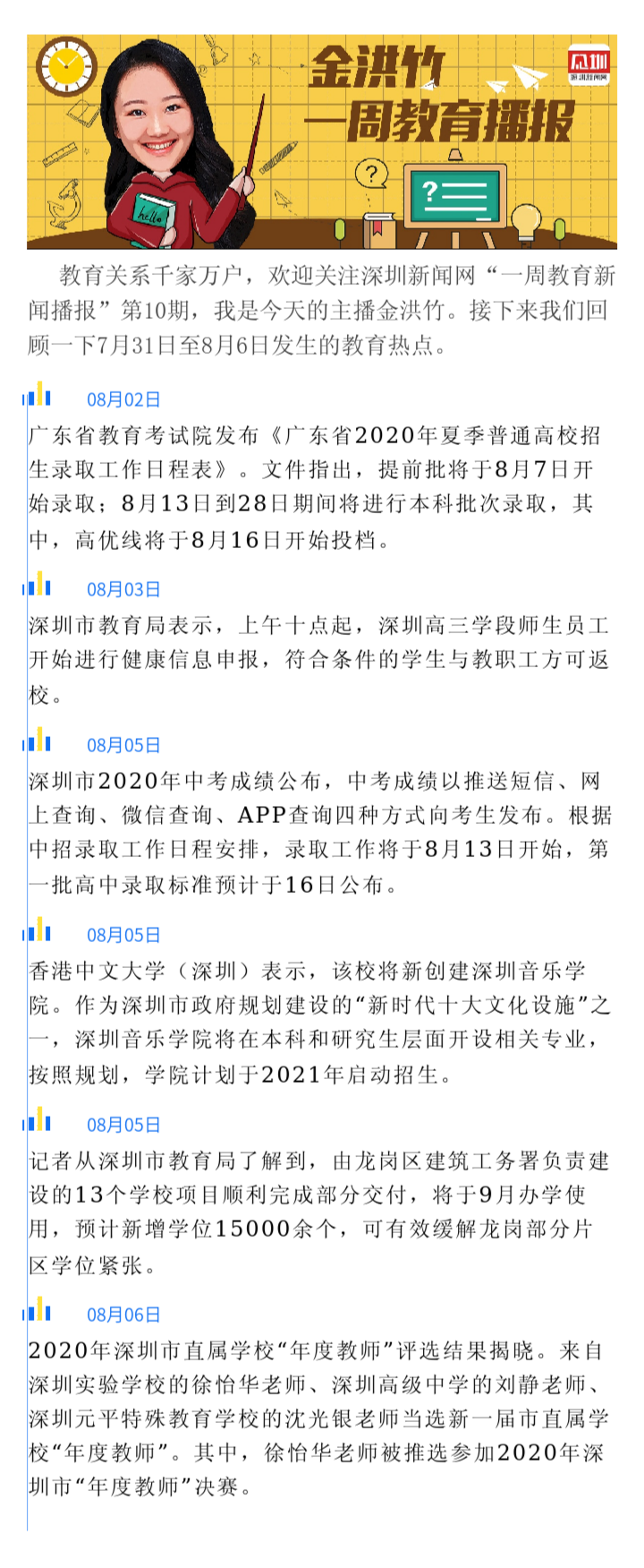 一周教育播報(bào)|第10期:深圳公布中考成績?“年度教師”評選揭曉