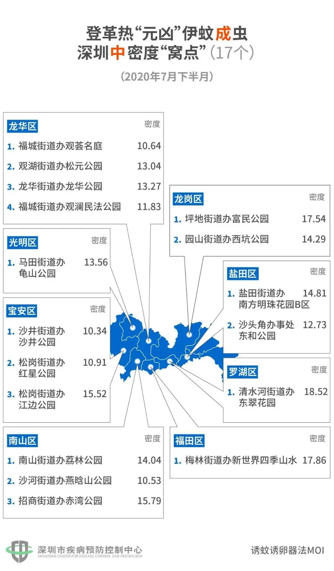 下面的伊蚊分布圖就是登革熱風(fēng)險地圖。中密度說明有一定的登革熱傳播風(fēng)險,高密度則意味著,一旦有外部病例輸入,就可能在周邊片區(qū)引發(fā)登革熱流行。