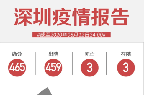 截至8月9日24時,深圳市累計報告新冠肺炎確診病例463例。目前在院1例。