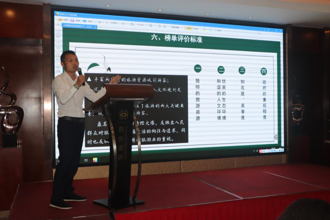 中國最美縣域榜單融媒體主任李帥向與會嘉賓介紹中國最美縣域榜單,并希望各地認真踐行“綠水青山就是金山銀山”發(fā)展理念,建設(shè)“最美縣域”,共圓“美麗中國”夢。