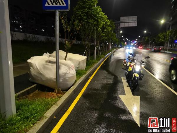 9月18日,羅湖大隊筍崗中隊警力馬清田、楊宇翰巡邏至珠嶺路時,發(fā)現(xiàn)一大袋泡沫被遺落在機(jī)動車道,馬清田、楊宇翰立即上前將泡沫移至人行道上,保障該路段車輛安全、有序通行。