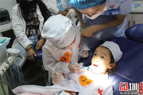 深圳新聞網(wǎng)訊(見圳客戶端、深圳新聞網(wǎng)記者 李慧 通訊員 楊紀歐)10月25日,羅湖區(qū)桂園街道老圍社區(qū)黨群服務(wù)中心組織社區(qū)青少年到醫(yī)院開展了一場社會實踐體驗活動,13位小朋友身穿白大褂,頭戴醫(yī)生帽,手拿口腔鏡,為“病人”檢查牙齒,當(dāng)了一回牙醫(yī),體驗了當(dāng)醫(yī)生的快樂,同時也感知到愛護牙齒的重要。3歲的劉嘉樂小朋友給姐姐看完牙齒后對媽媽說:“媽媽,姐姐有蛀牙。我以后也要好好刷牙。”