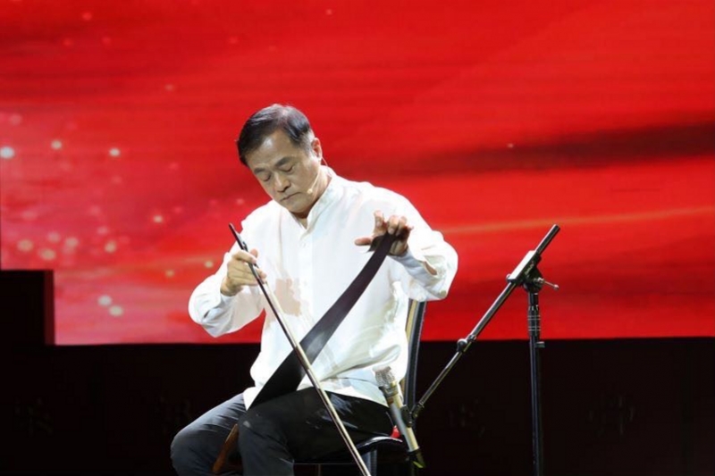 隨后,《鋸琴藝術(shù)》傳承人李元慶在不斷變換鋸片彎曲角度、拉動馬尾弓期間,奏出一首長達(dá)近4分鐘的悠揚(yáng)樂曲。他說,自己拉了30年鋸琴,希望讓更多人了解這門非遺藝術(shù)。在他的鼓勵下,觀眾席里兩名小學(xué)生舉手上臺,用鋸琴敲出長短不一的音符。