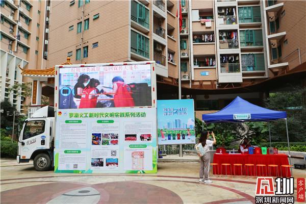 在漁民村文化廣場(chǎng),垃圾分類宣傳車上的LED屏幕播放著垃圾分類減量宣傳視頻,供社區(qū)居民觀看學(xué)習(xí),據(jù)悉,這是全市首輛垃圾分類宣傳大篷車。而此輛垃圾分類宣傳車從漁民村發(fā)車也有著重要意義,上世紀(jì)70年代,漁民村趁著改革開放的春風(fēng),發(fā)掘地域的優(yōu)勢(shì),做出了改革的第一步嘗試,經(jīng)過四十多年的發(fā)展,漁民村不僅夯實(shí)了物質(zhì)基礎(chǔ),更是在精神文明層面上有了長足的發(fā)展,如今漁民村也成立了自己的志愿服務(wù)組織—深圳市羅湖區(qū)民樂志愿者協(xié)會(huì)。
