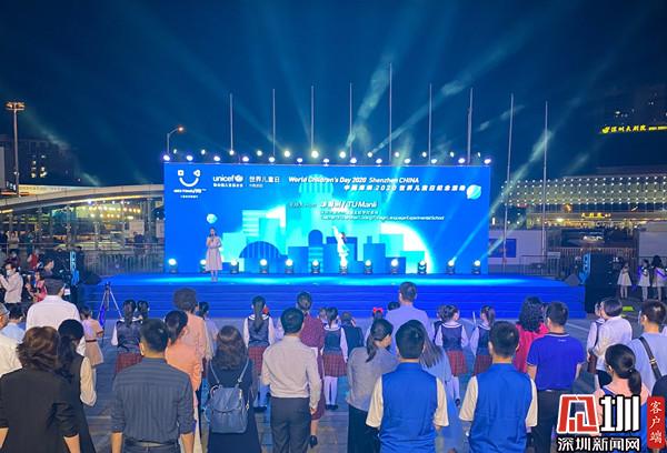 亮燈活動(dòng)在紅嶺小學(xué)學(xué)生管樂(lè)團(tuán)演奏的“童話地球”和“召喚英雄”以及螺嶺外國(guó)語(yǔ)實(shí)驗(yàn)學(xué)校合唱歌曲《我的創(chuàng)意我的夢(mèng)想》中拉開(kāi)序幕。當(dāng)晚8點(diǎn),20名羅湖區(qū)兒童代表和20名深港跨境學(xué)童代表用象征兒童友好的藍(lán)色之光點(diǎn)亮了京基100、平安銀行大廈、地王大廈、國(guó)貿(mào)大廈、東門(mén)步行街、羅湖口岸、蓮塘口岸等多個(gè)深圳地標(biāo)建筑?!?0年再出發(fā),點(diǎn)亮兒童未來(lái)”的活動(dòng)主題和“打造兒童友好型城市”等字樣呈現(xiàn)在地標(biāo)建筑上,閃耀在夜空,把鵬城的夜晚點(diǎn)綴得格外美麗。