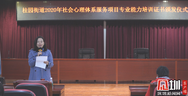 頒證儀式上,林宣妤對(duì)街道持證的心理服務(wù)人員表示祝賀,并提出殷切期望,希望持證人員所在社區(qū)要加強(qiáng)資源整合“盤(pán)活存量”,把購(gòu)買(mǎi)服務(wù)與開(kāi)拓專(zhuān)業(yè)志愿服務(wù)相結(jié)合,把挖掘暨有平臺(tái)、人才和培育本土化的心理服務(wù)隊(duì)伍相結(jié)合,把轄區(qū)內(nèi)現(xiàn)有的心理咨詢(xún)室、心理咨詢(xún)師、心理服務(wù)熱線、心理服務(wù)陣地等資源加以整合,構(gòu)建跨部門(mén)、跨領(lǐng)域的心理協(xié)作體系。同時(shí)希望持證人員在工作中能夠完成去粗取精,揚(yáng)長(zhǎng)抑短,去劣存優(yōu)的動(dòng)態(tài)過(guò)程,將社會(huì)心理服務(wù)體系建設(shè)工作抓早抓好,落實(shí)到位。張小梨認(rèn)為桂園街道黨工委辦事處拿出人力物力財(cái)力對(duì)參與社會(huì)心理服務(wù)的基層干部進(jìn)行心理學(xué)專(zhuān)業(yè)知識(shí)系統(tǒng)培訓(xùn),可以說(shuō)是走在了前列,探索出社會(huì)心理助力社會(huì)治理現(xiàn)代化建設(shè)的“桂園模式”,為深圳社會(huì)主義先行示范區(qū)建設(shè)在社會(huì)治理與社會(huì)心理服務(wù)方面提供了鮮活案例,值得點(diǎn)贊和推廣,也為相關(guān)學(xué)者在研究上提供了范例。