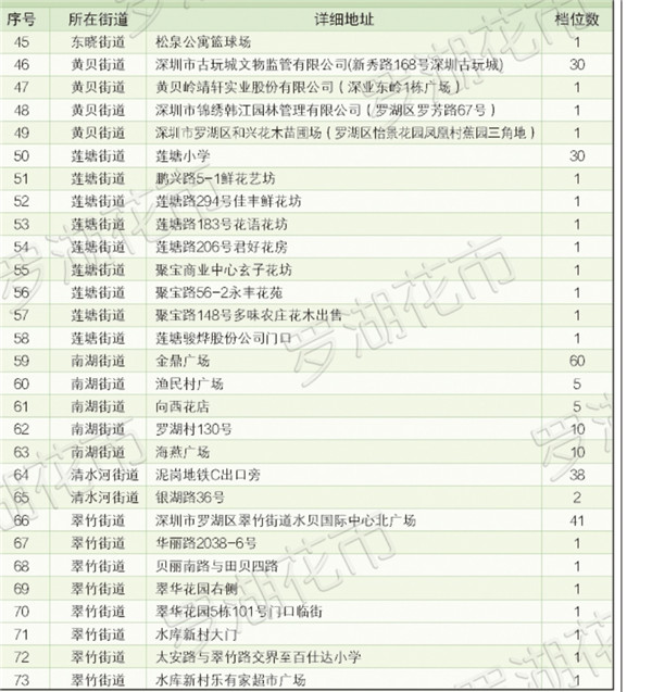 羅湖區(qū)共開設(shè)近500個花市鋪位,遍布全區(qū)10個街道,近40個社區(qū)。同時(shí),羅湖區(qū)還特別制作了花市地圖,最大限度的方便市民就近購花。
