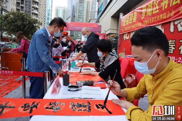 見圳客戶端·深圳新聞網(wǎng)2月3日訊(記者 劉晨)由羅湖區(qū)文化廣電旅游體育局、羅湖區(qū)文學(xué)藝術(shù)界聯(lián)合會(huì)主辦,羅湖區(qū)書法家協(xié)會(huì)承辦,國(guó)速地產(chǎn)協(xié)辦的“送福迎春”——羅湖區(qū)書法家書贈(zèng)春聯(lián)活動(dòng)2月1日在羅湖區(qū)寶安南路國(guó)速大廈南廣場(chǎng)舉行。