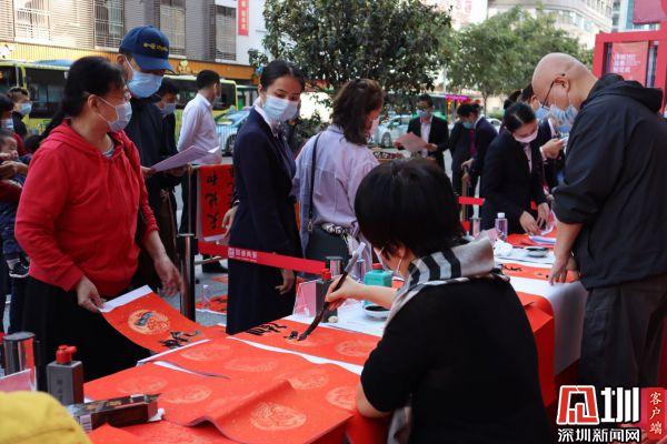據(jù)悉,羅湖區(qū)書法家協(xié)會(huì)于2021年春節(jié)前夕組織一批優(yōu)秀書法家深入社區(qū)基層,現(xiàn)場(chǎng)為群眾書贈(zèng)春聯(lián),書贈(zèng)福字,目前活動(dòng)先后在羅湖美術(shù)館南廣場(chǎng)、漁民村、羅湖區(qū)委等地舉辦多場(chǎng)。羅湖區(qū)書法家書贈(zèng)春聯(lián)活動(dòng)已連續(xù)舉辦了22年,深受群眾喜愛,成為羅湖的一項(xiàng)品牌活動(dòng)。