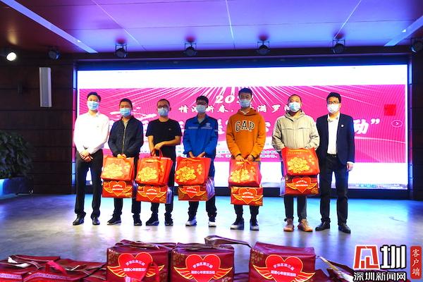 活動現(xiàn)場,6名小志愿者分別為環(huán)衛(wèi)工人、留深建筑青年代表送上愛心年夜飯及新春禮包。同時,現(xiàn)場也為本次活動的5家愛心企業(yè)頒發(fā)愛心錦旗。