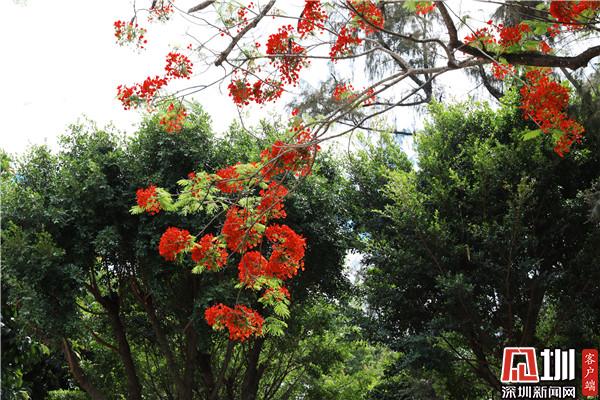 見圳客戶端·深圳新聞網(wǎng)5月18日訊(記者 李慧 見習(xí)記者 郝鈺詩 )又是一年五月天,春已盡,夏未央。伴隨深圳夏季而來的還有熱烈的鳳凰花?!叭~如飛凰之羽,花若丹鳳之冠?!痹谏钲诘脑S多地方,都種植了鳳凰木,五六月夏初之際,鳳凰花便開始掛滿枝頭,抬頭仰望便是紅彤彤的一片,就像太陽遺落在人間的衣裳,點綴著灣區(qū)之光。5月18日,深圳新聞網(wǎng)記者來到深圳東湖公園和洪湖公園,用鏡頭定格鳳凰花之美。