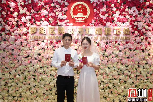 羅湖區(qū)婚姻登記處將疫情防控與高質(zhì)量登記服務(wù)有機結(jié)合,在準(zhǔn)備好充足防疫物資的基礎(chǔ)上,現(xiàn)場引導(dǎo)新人完成防疫流程,完成體溫測量和個人信息登記;同時聯(lián)動多部門共同合作,確保疫情防控常態(tài)化下的婚姻登記服務(wù)工作平穩(wěn)有序開展。5月20日當(dāng)天,羅湖婚姻登記處辦理結(jié)婚登記218對。