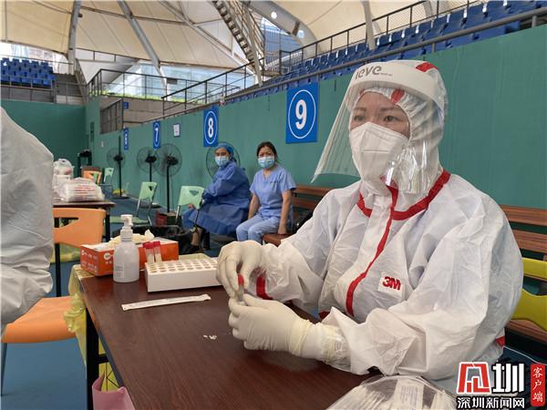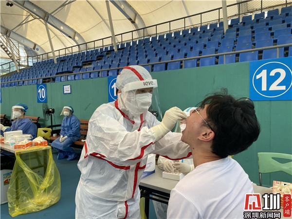 “根據(jù)當(dāng)前疫情防控工作要求,結(jié)合羅湖區(qū)實(shí)際情況,我們?cè)?8日啟用去體育館這個(gè)臨時(shí)采樣點(diǎn),現(xiàn)場(chǎng)我們可以看到整個(gè)采樣工作是很有秩序的,因?yàn)槲覀冊(cè)诿總€(gè)時(shí)間段安排不同的人群進(jìn)行采樣,所以不會(huì)出現(xiàn)排隊(duì)擁擠等情況?!绷_湖區(qū)衛(wèi)健局公共衛(wèi)生和職業(yè)衛(wèi)生科科長(zhǎng)江正談道,羅湖成立了一支擁有1200人的平戰(zhàn)結(jié)合應(yīng)急采樣隊(duì),隨時(shí)為疫情防控工作做好備戰(zhàn)準(zhǔn)備,一旦有需要,隨時(shí)就可以投入戰(zhàn)斗?!艾F(xiàn)在這個(gè)臨時(shí)檢測(cè)點(diǎn)每天的采樣量大概在5000個(gè)左右,我們很有信心,能夠打贏這場(chǎng)戰(zhàn)‘疫’。”江正說(shuō)。