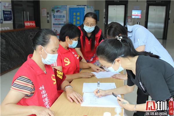 在社區(qū)“宣傳疫苗接種先鋒崗”前,忙碌著黨員的身影。社區(qū)居民林志文,是一名有著21年黨齡的老黨員。今年63歲的她身穿紅馬甲,臂戴“疫情監(jiān)督員”的紅袖章,精神抖擻地站在老圍花園E座出入口,笑容可掬地用本地話問:“靚仔,打疫苗了嗎?這里可以預(yù)約喲。”“靚仔”聽到如此親切的鄉(xiāng)音,停下匆匆的腳步,“沒打呢,現(xiàn)在預(yù)約吧?!迸c林姐是最佳拍檔的老黨員尹小妹,她們都是本地人,平時除了唱歌跳舞,她們還積極參加社區(qū)活動,疫情當(dāng)前,她們冒著被感染的風(fēng)險,勇敢站出來,用自己的實際行動,詮釋著黨員的模范先鋒帶頭作用。