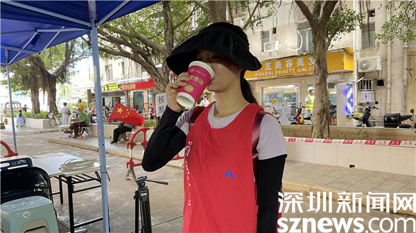 “目前全區(qū)大概有1.1萬名工作人員奮戰(zhàn)在社區(qū)、驛站防疫一線,他們無懼酷暑風雨堅守崗位,用汗水為疫情防控構(gòu)筑堅實堡壘,羅湖區(qū)婦聯(lián)代表羅湖區(qū)社區(qū)小區(qū)組,積極聯(lián)系愛心企業(yè)瀾滄古茶集團,送上一杯陳皮茶,感謝他們的無私奉獻,也希望他們保護好自己。”黃毓瓊對記者說。