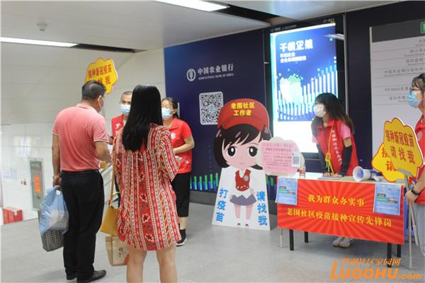 客運繁忙的大劇院地鐵站就在老圍社區(qū),老圍社區(qū)黨委就把“疫苗接種宣傳先鋒崗”從小區(qū)卡口擴展到地鐵口。在川流不息的地鐵口,宣傳崗上的大字“我為群眾辦實事,老圍社區(qū)疫苗接種宣傳先鋒崗”,金光閃閃格外醒目。旁邊的小喇叭循環(huán)播放:“接種疫苗人人有責,打第二針疫苗請找我,不用排隊不用預約,專車接送?!?/p>