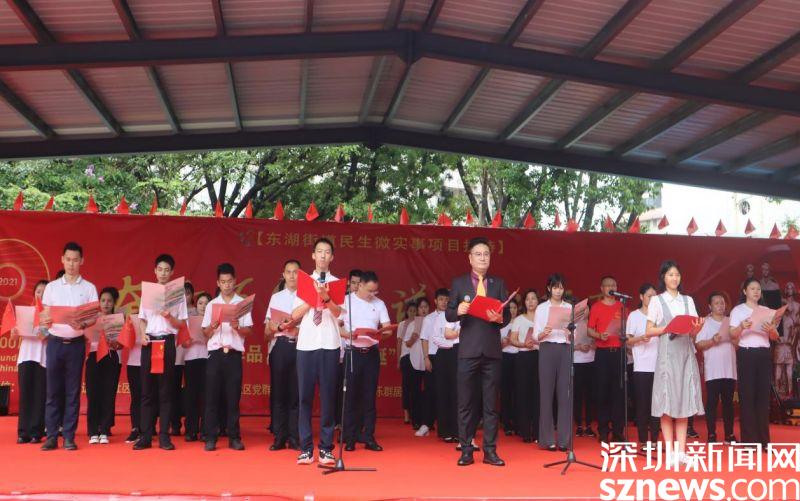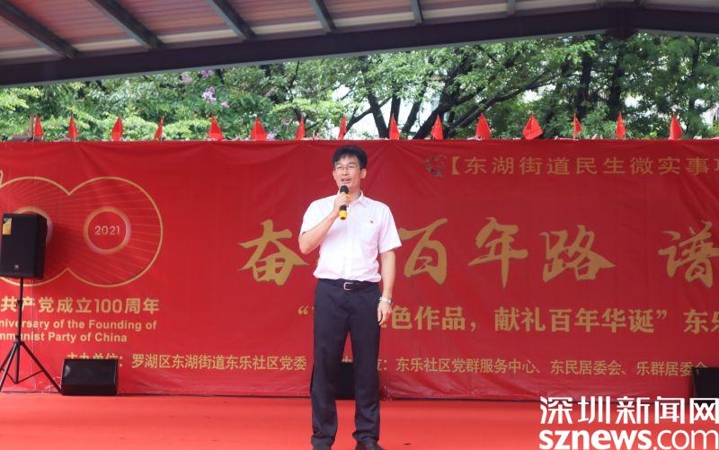 讀特客戶端·深圳新聞網(wǎng)2021年7月30日訊(見(jiàn)習(xí)記者 邱婕 通訊員 黃小花)百年征程波瀾壯闊、百年初心歷久彌堅(jiān)、百年成就催人奮進(jìn)、百年歌聲唱響今天。7月30日上午,“百幅紅色作品,獻(xiàn)禮百年華誕”東樂(lè)社區(qū)建黨100周年慶祝活動(dòng)在東樂(lè)花園文化廣場(chǎng)舉行。東湖街道黨工委副書(shū)記、辦事處主任劉慧堅(jiān),黨工委副書(shū)記、人大工委主任謝統(tǒng)敏,東湖街道二級(jí)調(diào)研員、東樂(lè)社區(qū)第一書(shū)記曾列文,東湖街道辦事處副主任李民,羅湖區(qū)退役軍人事務(wù)局副局長(zhǎng)何朝陽(yáng),東樂(lè)社區(qū)黨委書(shū)記劉芳,東樂(lè)社區(qū)社工與義工及廣大居民朋友400余人參與此次活動(dòng)。