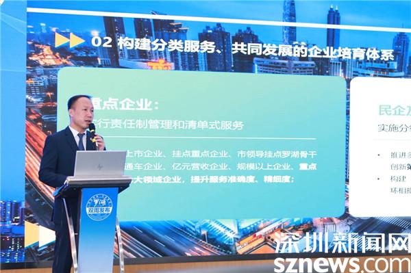 讀特客戶端·深圳新聞網(wǎng)2021年9月2日訊(記者 郭含笑)成立優(yōu)化營商環(huán)境領(lǐng)導(dǎo)小組,出臺優(yōu)化營商環(huán)境相關(guān)政策辦法,推出一系列服務(wù)企業(yè)的有力舉措,連續(xù)兩年被評為“中國營商環(huán)境百佳示范縣市”......一直以來,羅湖區(qū)高度重視營商環(huán)境優(yōu)化工作,9月2日,羅湖“雙周發(fā)布”企業(yè)服務(wù)專場舉行,羅湖區(qū)企業(yè)服務(wù)中心主任陳曉軍圍繞羅湖扶持政策、產(chǎn)業(yè)空間、服務(wù)升級等方面,帶來“數(shù)字賦能,服務(wù)升級,打造企聚羅湖生態(tài)圈”主題發(fā)布。