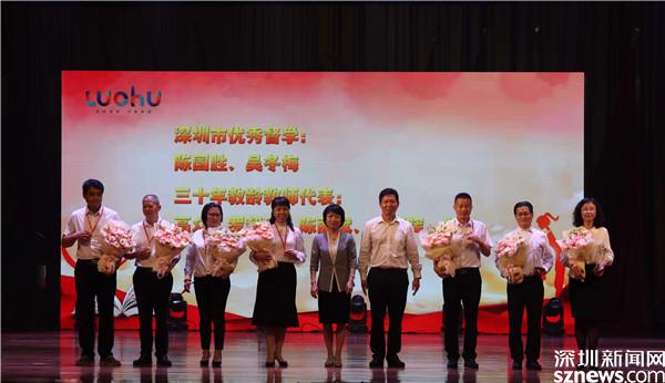 會(huì)上,羅湖區(qū)委書記羅育德,深圳市教育局黨組成員、副局長(zhǎng)王水發(fā),羅湖區(qū)委副書記、區(qū)人民政府黨組書記、代區(qū)長(zhǎng)范德繁等領(lǐng)導(dǎo)出席大會(huì)并為深圳市十佳校長(zhǎng)、2021年市級(jí)年度教師、2021年區(qū)幼兒園年度教師,三十年教齡教師、功勛園丁、教育先進(jìn)單位、先進(jìn)教育工作者、優(yōu)秀班主任和優(yōu)秀教師等代表頒獎(jiǎng)。