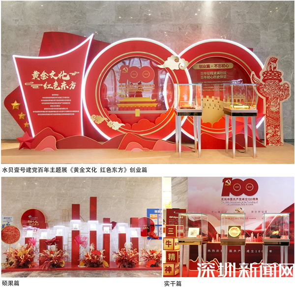 水貝壹號作為多家上市珠寶公司的總部基地,石妍說,作為黃金珠寶行業(yè)發(fā)展的見證者和實踐者,水貝壹號始終堅持以黨建為重要抓手,弘揚光榮傳統(tǒng)、賡續(xù)紅色血脈,為熱烈慶祝中國共產黨成立100周年,回顧中國共產黨波瀾壯闊的奮斗歷程,熱情歌頌建黨百年的輝煌業(yè)績,從7月1日始至10月31日止為期100天,推出以“黃金文化紅色東方”為主題的系列展覽活動,展覽內容包括“1921年一大南湖紅船”滌蕩百年文創(chuàng)作品展、“三?!本裎膭?chuàng)作品展、《深圳八景》金箔剪紙藝術展等,獻禮建黨百年華誕。每天吸引大批慕名而來的黨員和市民圍觀打卡,近5000余人次到場參加,媒體曝光傳播10萬余次。
