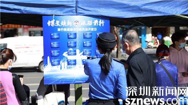 同時現(xiàn)場還通過展板、易拉寶展示一年來翠竹街道在市容市貌亂象、城市秩序、垃圾分類、環(huán)衛(wèi)管理、違拆控違、隊伍建設(shè)等綜合行政執(zhí)法工作上取得的亮點和成果,通過展示城管執(zhí)法工作,讓市民了解城管執(zhí)法,從而理解、支持并且監(jiān)督日后的城管執(zhí)法工作,改變市民的刻板印象,形成互相信賴的良好關(guān)系。