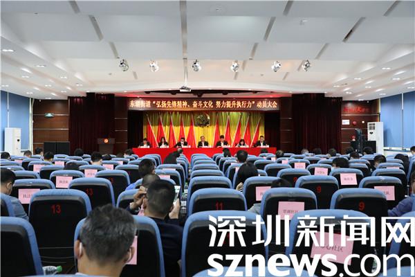 讀特客戶端·深圳新聞網(wǎng)2021年11月19日訊(記者 郭含笑 通訊員 黃貽凱)感恩奮進(jìn)跟黨走,緊鑼密鼓再出發(fā)。羅湖區(qū)第八次黨代會(huì)、區(qū)“兩會(huì)”的順利閉幕是一個(gè)結(jié)束,也是羅湖新征程、新使命、新奮斗的開(kāi)始。為弘揚(yáng)羅湖光榮傳統(tǒng)、賡續(xù)羅湖血脈傳承,在街道全體黨員干部中形成憋足一口氣趕超奔跑、鉚足一股勁狠抓落實(shí)的風(fēng)氣,把先鋒精神、奮斗文化轉(zhuǎn)化為強(qiáng)大執(zhí)行力、踐行在奮斗新征程,11月19日下午,深圳市羅湖區(qū)東湖街道召開(kāi)“弘揚(yáng)先鋒精神、奮斗文化 努力提升執(zhí)行力”動(dòng)員大會(huì)。街道黨工委書(shū)記程時(shí)菊等處級(jí)干部,各辦、中心全體在編人員,各社區(qū)黨委書(shū)記、副書(shū)記、副站長(zhǎng)、城管專(zhuān)干共100余人參加會(huì)議。