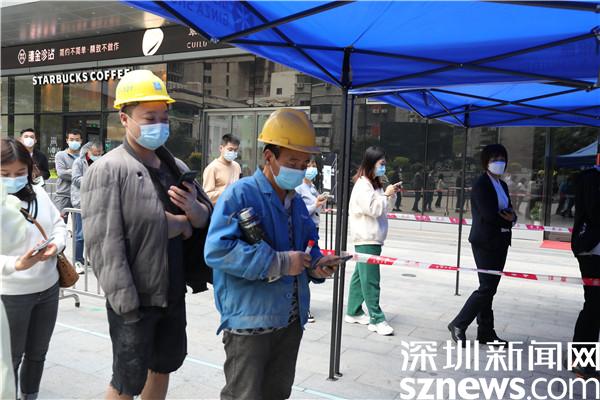 “請(qǐng)戴好口罩,保持一米距離,提前打開健康碼……”走進(jìn)水貝萬(wàn)山,周邊商場(chǎng)和店鋪均已關(guān)閉進(jìn)行消殺,陸續(xù)有周邊市民在核酸檢測(cè)點(diǎn)有序排隊(duì)檢測(cè)。