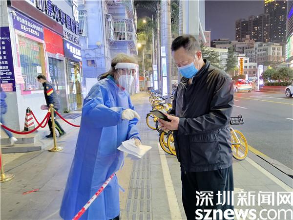 讀特客戶端·深圳新聞網(wǎng)2022年1月10日訊(記者 劉嘉敏 通訊員 楊紀歐)“來了來了,又來了一個!請打開健康碼,測體溫。”在羅湖區(qū)桂園街道老圍社區(qū)禧程酒店臨時檢測點,不時響起這樣的歡呼聲,那喜悅之情溢于言表,這是志愿者周先珍。夜已深,但檢測點依然燈火通明,社區(qū)工作者和志愿者以及醫(yī)務(wù)人員挑燈夜戰(zhàn),周先珍是其中之一。