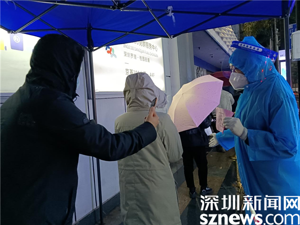 讀特客戶端·深圳新聞網(wǎng)2022年2月24日訊(記者 劉嘉敏 通訊員 楊紀(jì)歐)雖然這幾天的冷風(fēng)冷雨一直不停,氣氛低至6度,但深圳市羅湖區(qū)桂園街道老圍社區(qū)設(shè)在各處的核酸檢測(cè)點(diǎn)一直在有序進(jìn)行著。人們打著雨傘排隊(duì),社區(qū)工作人員和志愿者高效地引導(dǎo),讓等候的人快速地采樣,協(xié)助不會(huì)操作的人出示粵核酸碼。工作人員的手腳都凍僵了,但沒有人退縮,用自己的“凍”起來,守護(hù)著深圳人的綠碼,捍衛(wèi)著社區(qū)的平安。