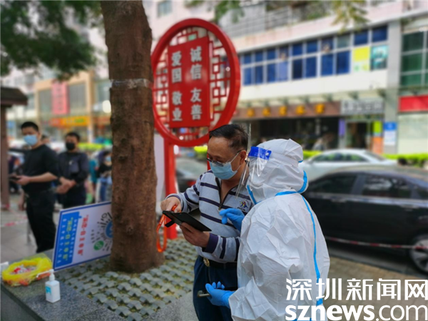 為做好核酸檢測(cè)應(yīng)檢盡檢、愿檢盡檢、不漏一戶、不漏一人。3月5日—6日周末期間,仙湖社區(qū)各核酸檢測(cè)點(diǎn)提前就位,各項(xiàng)檢測(cè)工作正常進(jìn)行?!罢?qǐng)來(lái)檢測(cè)核酸的居民朋友,打開微信掃一掃場(chǎng)所碼,打卡成功后,切換粵核酸二維碼給工作人員掃碼。接種新冠疫苗48小時(shí)之內(nèi)不能檢測(cè)核酸,謝謝配合?!痹诨ヂ?lián)網(wǎng)產(chǎn)業(yè)園區(qū)的核酸點(diǎn)位,仙湖社區(qū)黨群服務(wù)中心主任劉紅艷腰間圍上裝有試管的袋子,邊掃碼邊宣傳,忙的不亦樂(lè)乎。她說(shuō):“圍著袋子是為了提高掃碼效率,我們每天檢測(cè)7000多人,上千遍都重復(fù)同樣的話,一個(gè)字都不會(huì)錯(cuò)。居民們都很親切的叫我們‘愛碼士’小分隊(duì),我們也很喜歡這樣的‘愛稱’”。