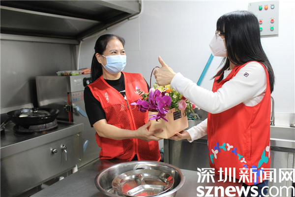 在社區(qū)廚房,老圍社區(qū)居民周文清正在忙碌,疫情開始以來,社區(qū)擔負著下沉人員和醫(yī)務(wù)人員的中餐和晚餐,每餐四五十人吃飯,任務(wù)繁重,廚師一人根本忙不過來。家住老圍花園的社區(qū)居民賴秀文、周文清得知情況后,立刻趕來幫廚,洗菜、切肉、炒菜、分裝飯盒、搞衛(wèi)生,樣樣都搶著干。羅湖區(qū)最美家庭賴秀文,一連兩個星期在社區(qū)幫廚,發(fā)揮她高超的廚藝,將每一道菜都做得色香味俱全。有了這些熱心居民的協(xié)助,一線人員得以及時吃上熱乎乎的飯菜,保障了防疫工作有序進行。她們用自己的方式參與疫情防控,為社區(qū)安寧貢獻一己之力。