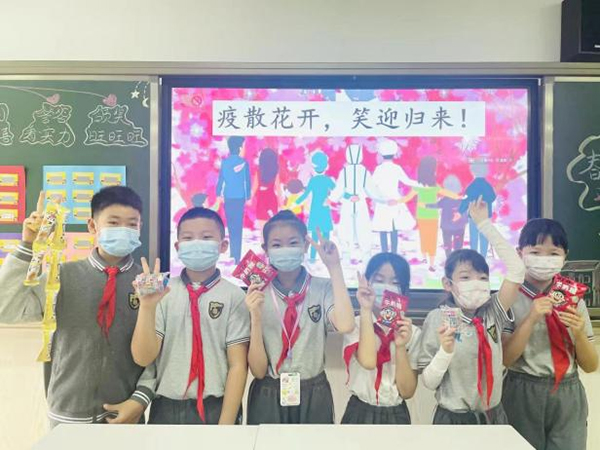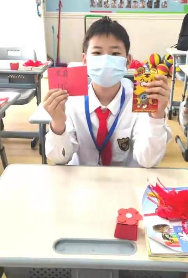 502班的返校儀式“愛意濃濃”。紅色拉花讓每個(gè)孩子都喜氣洋洋;桌上班主任老師親手折的小禮盒和各式各樣的糖果讓孩子們甜蜜加倍;還有暖心“紅包”,里面有老師們一筆一畫書寫給孩子們的驚喜,更是寄托了無限的關(guān)心與激勵(lì)。