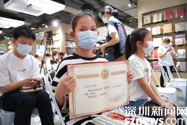 活動(dòng)現(xiàn)場揭曉了大賽的一等獎(jiǎng)、二等獎(jiǎng)、三等獎(jiǎng)、優(yōu)秀獎(jiǎng)作品,以及優(yōu)秀輔導(dǎo)獎(jiǎng)和優(yōu)秀組織獎(jiǎng),共有111位獲獎(jiǎng)?wù)撸ńM織)。為了激勵(lì)孩子們繼續(xù)熱愛閱讀、鼓勵(lì)社會關(guān)注并支持未成年人閱讀,羅湖區(qū)委宣傳部還特別為獲獎(jiǎng)?wù)邆冞M(jìn)行贈(zèng)書。據(jù)了解,“藍(lán)書封”獲獎(jiǎng)作品展同步在羅湖書城一樓藝展空間進(jìn)行,展期為4月23日-5月23日。