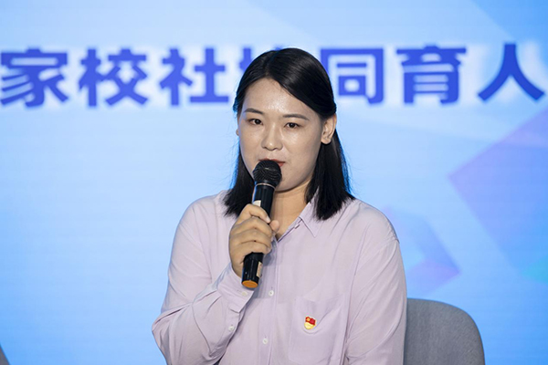 社區(qū)代表大望社區(qū)黨委書記高桂秀向大家分享了她致力于“家校社協(xié)同育人”的初心以及大望社區(qū)的相關(guān)探索,大望社區(qū)孩子及其家庭人數(shù)占社區(qū)的70%以上,且大部分無異于“留守未成年人”和困境未成年人。大望社區(qū)抓住轄區(qū)內(nèi)家庭教育的痛點與堵點,通過貫徹社區(qū)“大黨委”理念、建立定期聯(lián)系的聯(lián)席工作例會制度、充分利用轄區(qū)優(yōu)勢資源,成立家長黨員志愿者服務(wù)隊等多措并舉,多方聯(lián)動,形成家庭主體、學(xué)校主導(dǎo)、社區(qū)參與的育人網(wǎng)絡(luò)。以社區(qū)黨委為突破點,融合一體,聚合成銜接有效、資源共享、活動共商、項目共育、互促共榮的動態(tài)雙向互動協(xié)同育人共同體,構(gòu)建大望特色的‘家校社’協(xié)同育人的新模式,交出一份人民滿意的答卷。