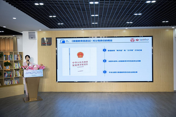 沙龍伊始,羅湖區(qū)人民法院民一庭(家事庭)副庭長欒媛帶來《〈家庭教育促進法〉解讀》的專題講座,闡明《家庭教育促進法》的意義,明晰家長“兩不得”“三不能”的行為紅線,并針對當(dāng)下大多家庭教育存在生而不養(yǎng)、養(yǎng)而不教等突出問題進行剖析,結(jié)合工作歷程中生動形象的案例,讓許多家長明確了法律的要求。同時,欒法官也為家長們提出了實用科學(xué)的家庭教育內(nèi)容和方法,也對家校社協(xié)同育人機制發(fā)表了自己的想法。