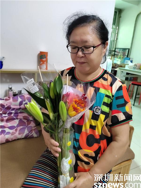 在活動(dòng)過(guò)程中,11位組員都收到了一束鮮花,是社工利用空余時(shí)間,捧著花送到每位組員家中的。社工用鮮花敲開(kāi)組員的家門(mén),這就仿佛是一次家訪,收到花的組員開(kāi)心地與社工合影?;ㄩ_(kāi)的時(shí)候,不少組員都拍下來(lái)發(fā)在群里,讓快樂(lè)與美好的氣氛在群里彌漫。組員袁春艷在微信群里說(shuō):“感謝人美心善的社工們,在工作異常忙碌的同時(shí),不僅為我們精心準(zhǔn)備干貨滿滿、精彩絕倫的減壓課,還為我們送來(lái)鮮花的芬芳!讓我日常雜亂的家變得美麗精致、花香彌散、情趣高雅!真的有太多向您學(xué)習(xí)的地方!愛(ài)您!”
