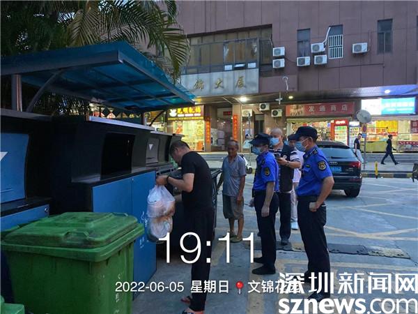 當(dāng)天晚上19點(diǎn)-21點(diǎn),小區(qū)黨員和義工在文錦花園、海富花園垃圾分類投放點(diǎn)與小區(qū)垃圾分類督導(dǎo)員共同開(kāi)展垃圾分類夜間督導(dǎo)活動(dòng),引導(dǎo)居民分類投放垃圾,并為居民詳細(xì)講解和宣傳廚余垃圾分類的相關(guān)知識(shí)。同時(shí)聯(lián)同街道執(zhí)法隊(duì)開(kāi)展“夜間執(zhí)法”,對(duì)所檢查的小區(qū)廚余垃圾分出量較低的物業(yè)小區(qū)開(kāi)展執(zhí)法檢查,一方面指導(dǎo)垃圾分類督導(dǎo)員切實(shí)履職,另一方面對(duì)于亂投放垃圾的行為,對(duì)其責(zé)令改正。