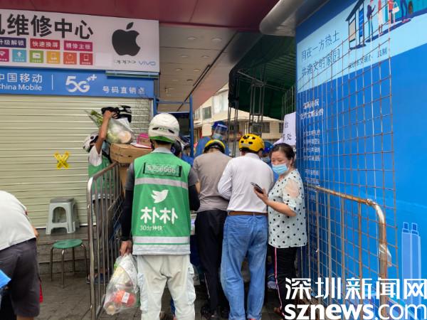 在向西村外圍,工作人員認真值守,并引導每一個進入小區(qū)的市民進行掃碼、測溫、戴口罩?!鞍l(fā)現(xiàn)疑似病例之后,我們就迅速行動,進行整個街道的全員核酸采樣,對疑似病例的小區(qū)進行就地核酸、就地管控。我們立刻成立了配送、醫(yī)療、轉(zhuǎn)運小組等保障居民服務的工作小組,每個小組都有不同的部門在指導負責。像我們整個配送小組,投入了將近一百三十人,全面保障了我們整個封控、管控區(qū)居民的日常配送工作。這個貨架上面,目前來說已經(jīng)是非??焖俚厍謇硗炅?,居民的外賣這一類,我們優(yōu)先配送。”羅湖區(qū)南湖街道物資配送組副組長鄺國斌說。